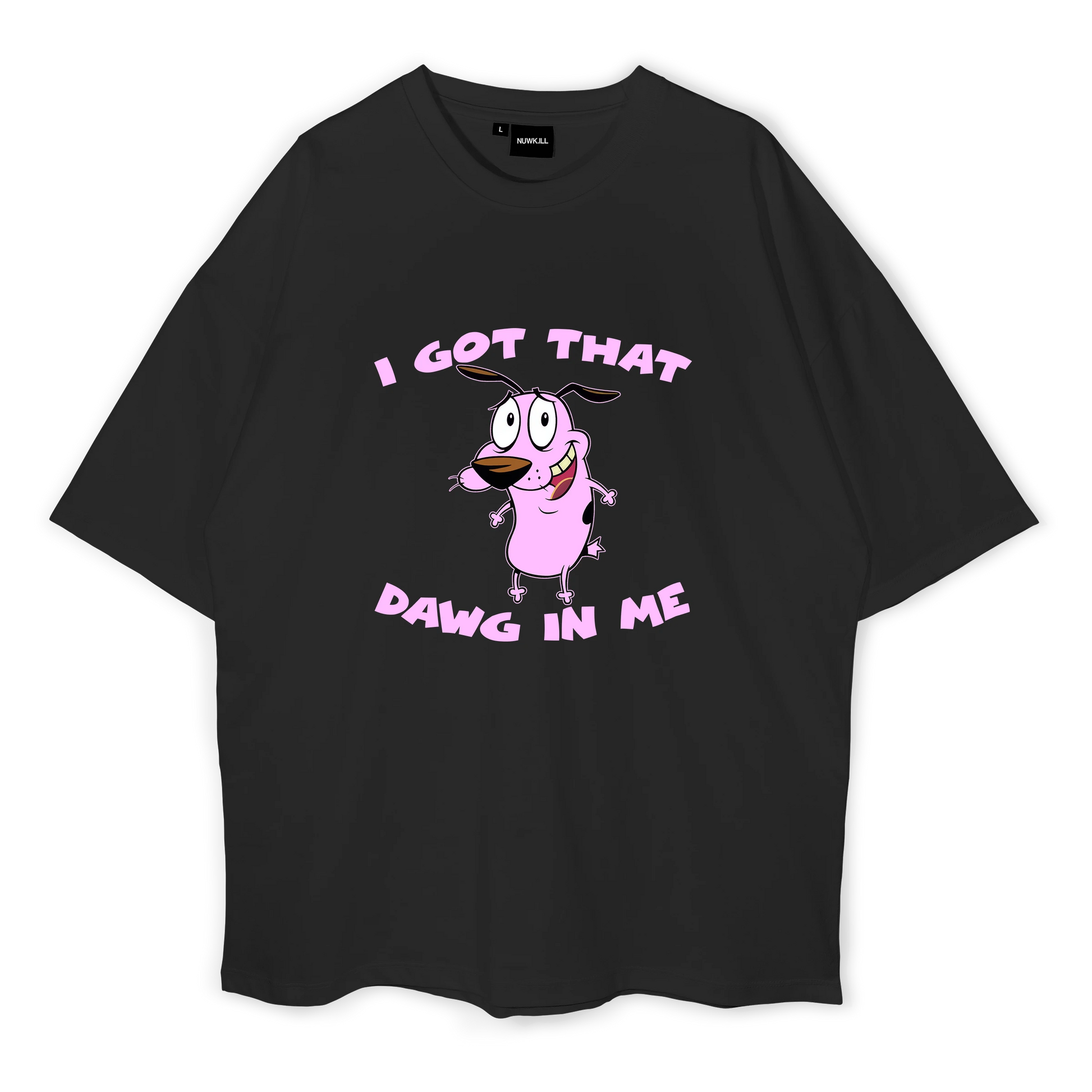 The “I Got That Dawg In Me” tee beams classic pink-pup chaos into meme era perfection, six expressive panels that swing from jump-scare jitters to smug, stone-cold dawg energy. Printed on an oversized 100% cotton blank, it’s soft on skin, loud in nostalgia, early-2000s cartoon vibes with a 2025 wink.