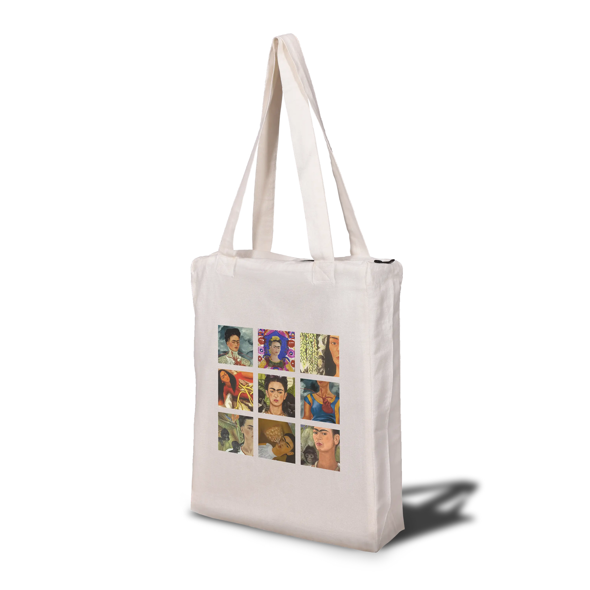 Discover the epitome of Art and style with our Frida Kahlo Collage Tote Bag. Elevate your wardrobe with this iconic, comfortable, and fashionable T-shirt. It's perfect for those who crave a touch of Frida Kahlo Art in their everyday attire. Shop now and stand out in the crowd with this exclusive design.