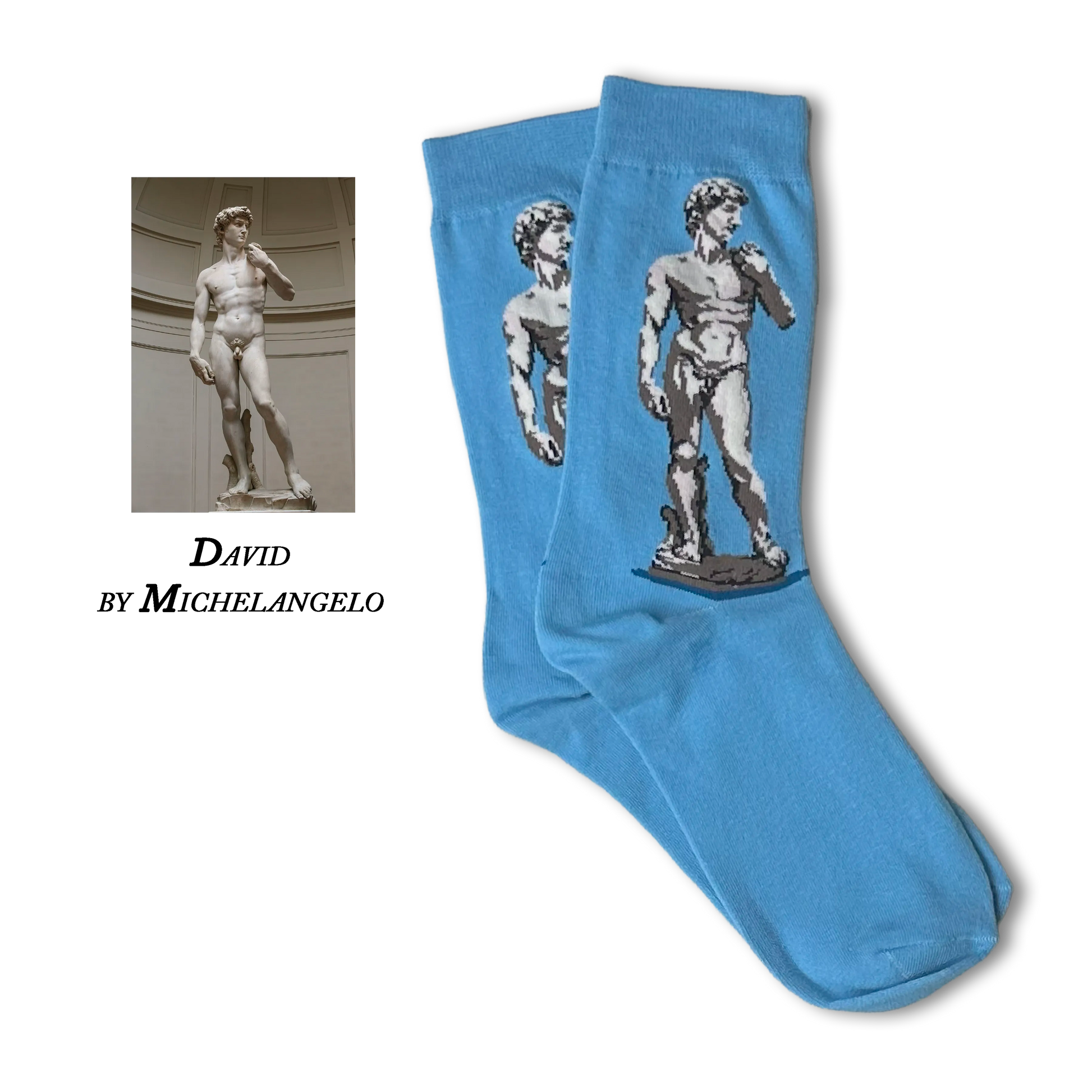 Meet the Michelangelo David Blue Art Socks—where Florence’s greatest statue meets your everyday drip. Knit from premium combed cotton for that “walking on clouds” feel, these unisex crew socks splash David’s chiselled form across a bold azure backdrop.