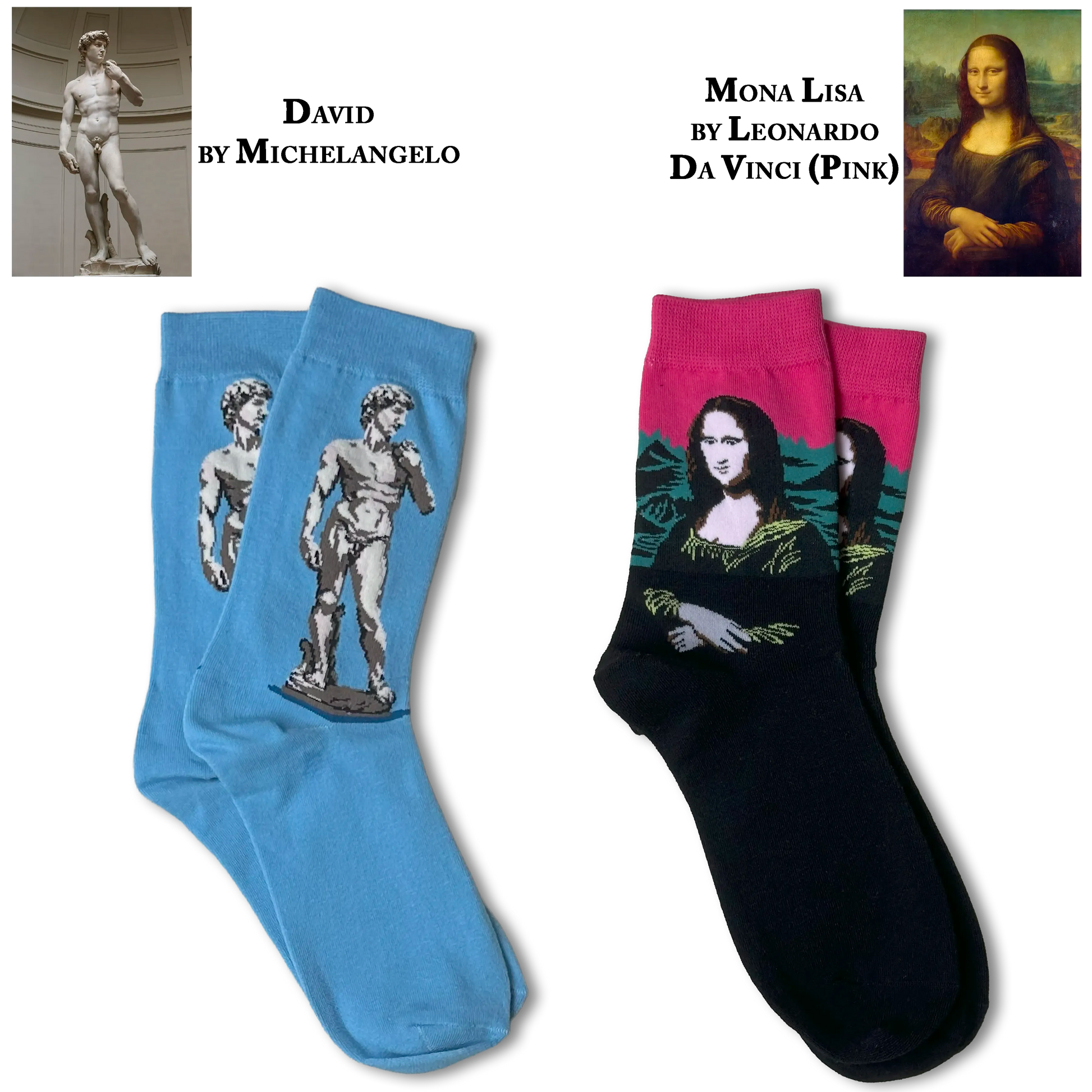 Mona Lisa by Leonardo da Vinci (Pink) & David by Michelangelo Socks