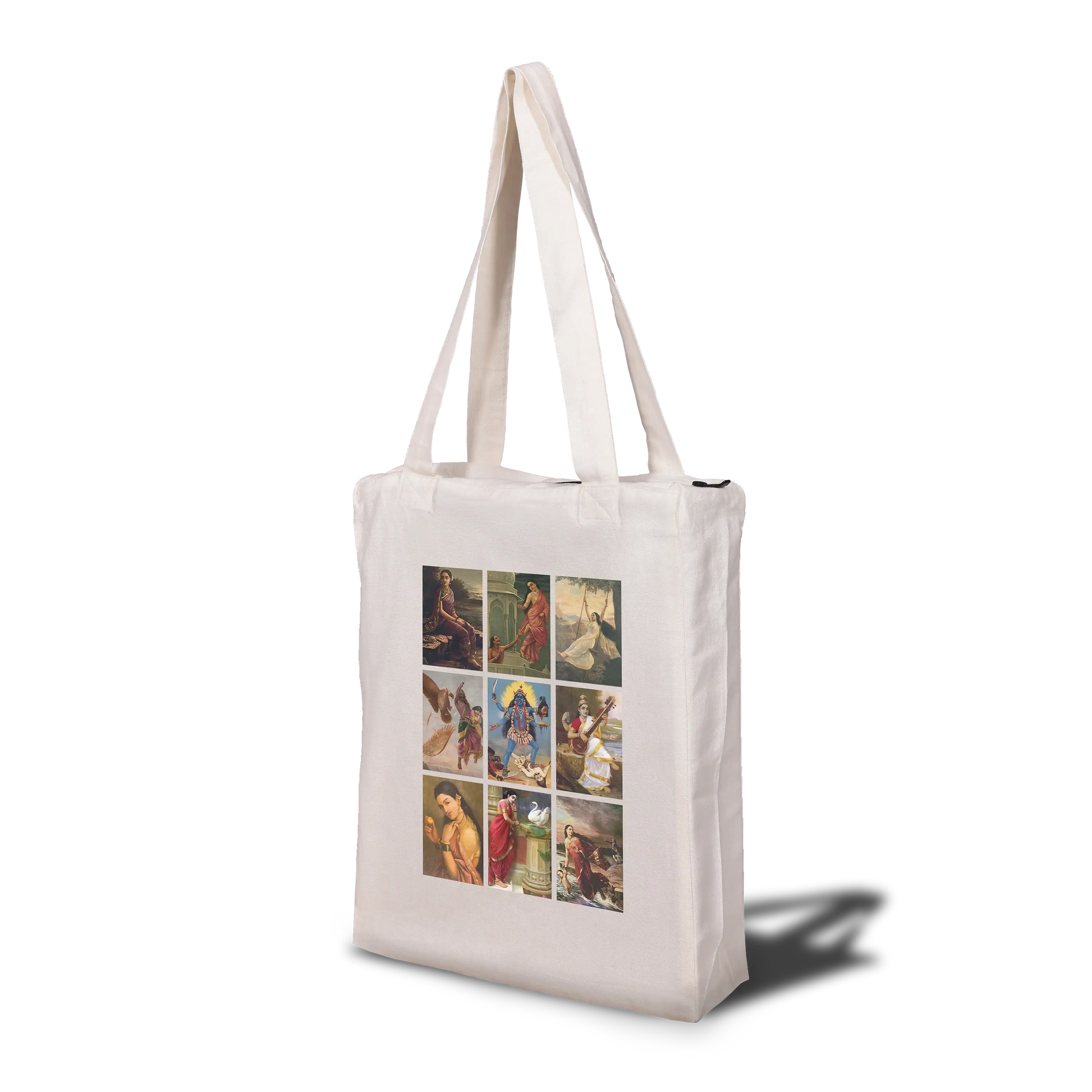 Discover the epitome of Art and style with our Raja Ravi Varma Collage Tote Bag. Elevate your wardrobe with this iconic, comfortable, and fashionable Tote Bag. It's perfect for those who crave a touch of Raja Ravi Varma Paintings in their everyday attire. Shop now and stand out in the crowd with this exclusive design.