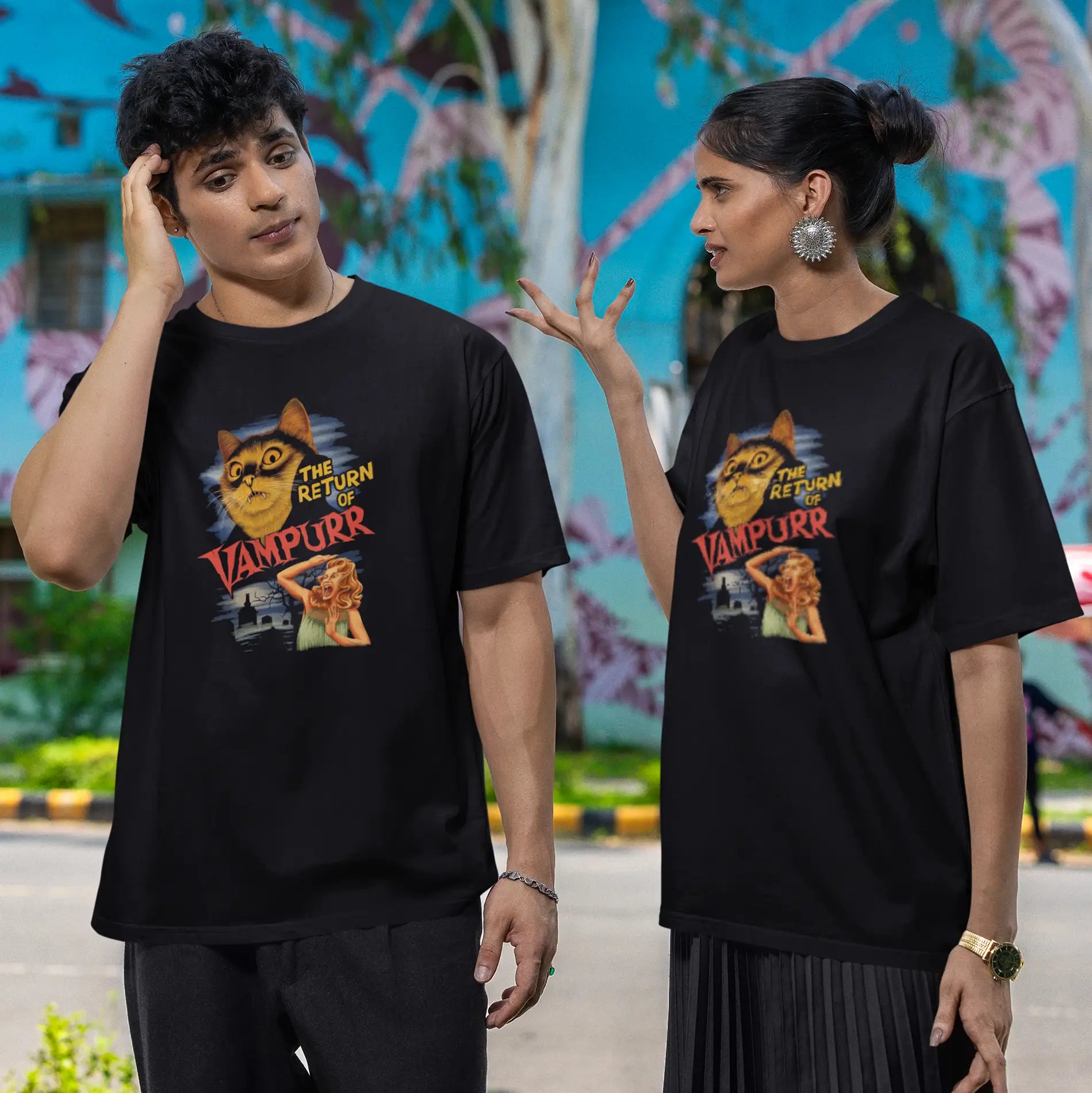 Discover the epitome of spooky-cute style with our “The Return of Vampurr” Oversized T-shirt. Elevate your wardrobe with this iconic, comfortable, and fashionable tee. It’s perfect for those who crave retro-horror vibes, midnight mischief, and a dash of feline flair in their everyday attire. Shop now and stand out from the crowd with this exclusive design.